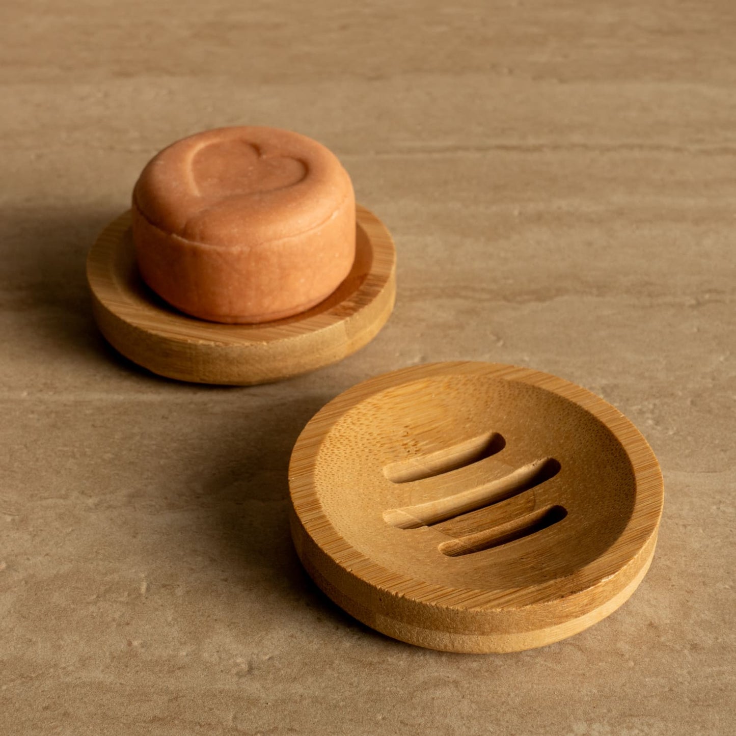 This elegant round soap dish crafted from sustainable bamboo offers the perfect solution for storing your shampoo and conditioner bars. Its minimalist aesthetic and eco-friendly nature seamlessly blend into any bathroom or kitchen décor. The bamboo not only looks beautiful, it's durable, ensuring that your precious bars stay dry and last longer.