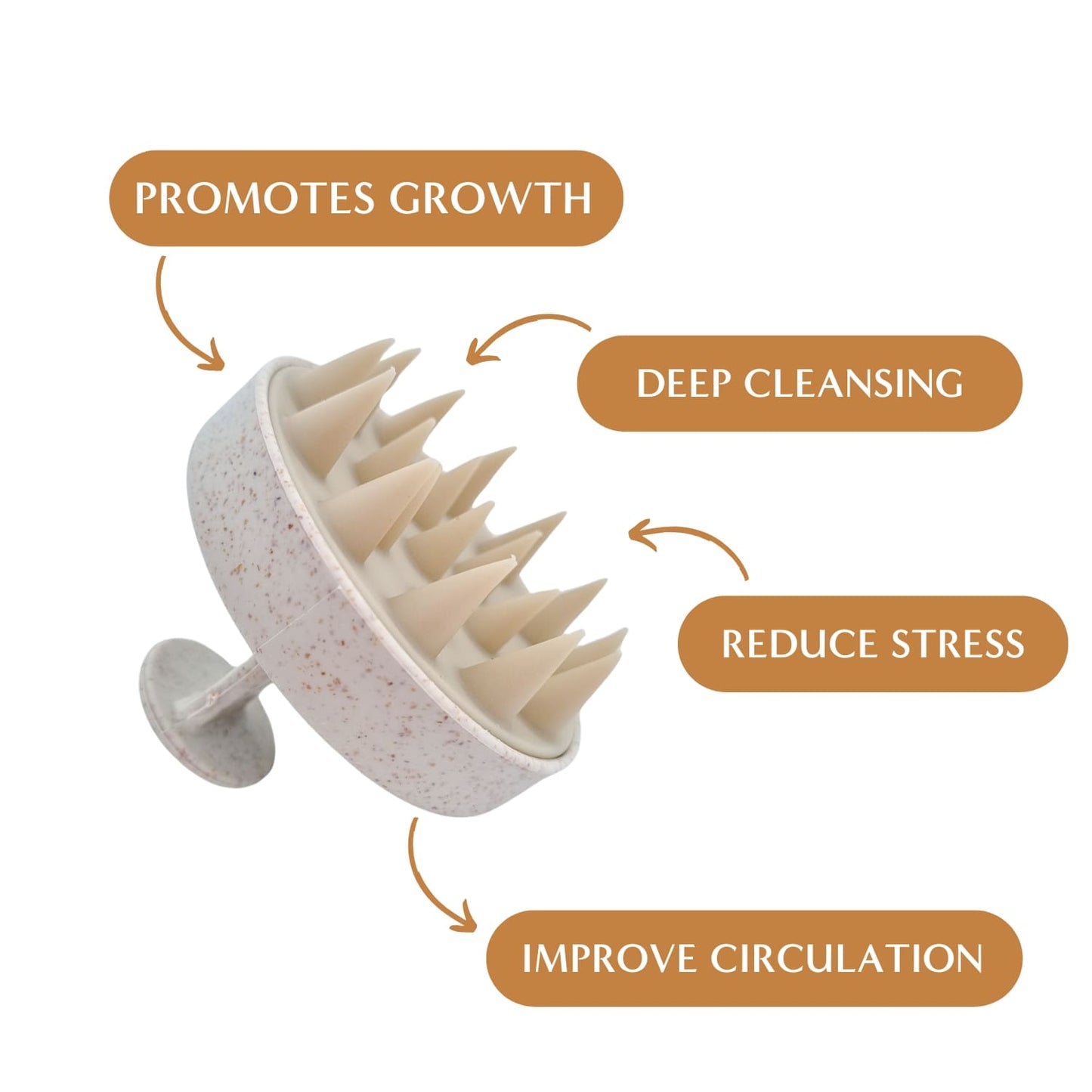 Crafted with eco-conscious materials, the massager features a durable design made from straw, rice husk, and other plant fibers, combined with soft silicone teeth for gentle yet effective scalp stimulation.